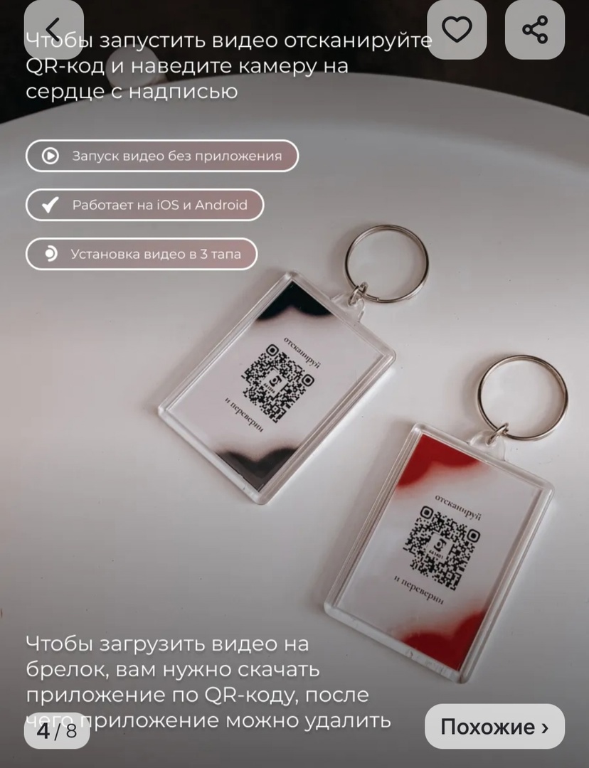 На эти брелоки можно загрузить видео при помощи специального приложения. Инструкция прилагается. А затем останется лишь отсканировать QR-код и наслаждаться записью приятных воспоминаний. Стоимость оригинальной вещицы колеблется в пределах 350-500 рублей.