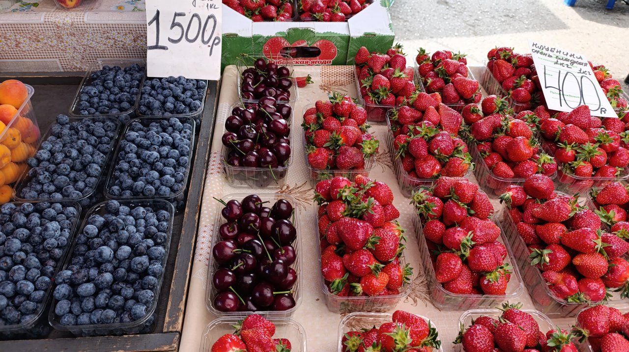 Черешня из Узбекистана, которая даже выглядит не очень презентабельно, - кое-где примята, как будто переморожена, продается по 1000 рублей за килограмм.