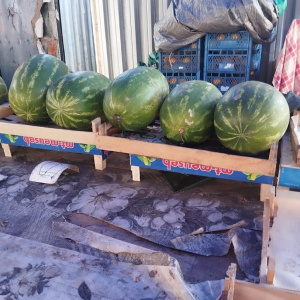 Уже появились даже арбузы, правда, всего в одной точке. Продавец говорит ягода из Ирана, стоит 100 рублей закилограмм.