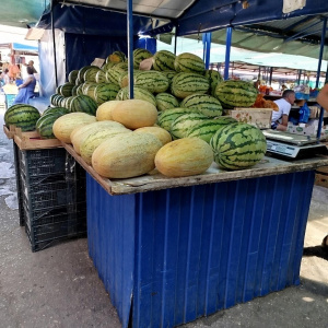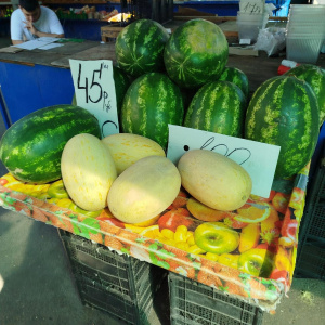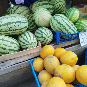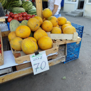 Дынь тоже на рынке полно. Их торговцы предлагают купить по 70-80 рублей за кило.