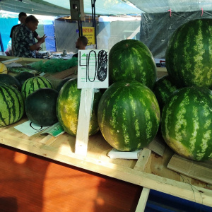 Цены на арбузы на рынке варьируются от 35 до 45 рублей за кило. В супермаркетах «полосатые» продают по 40 рулей. Это сорта «Огонек» и «Бедуин». Но есть в продаже и более редкие: «Мраморные» - светло-зеленые, практически без полос, «Черный принц» - темные небольшие ягоды. Они стоят немного дороже – 50-55 рублей за килограмм.