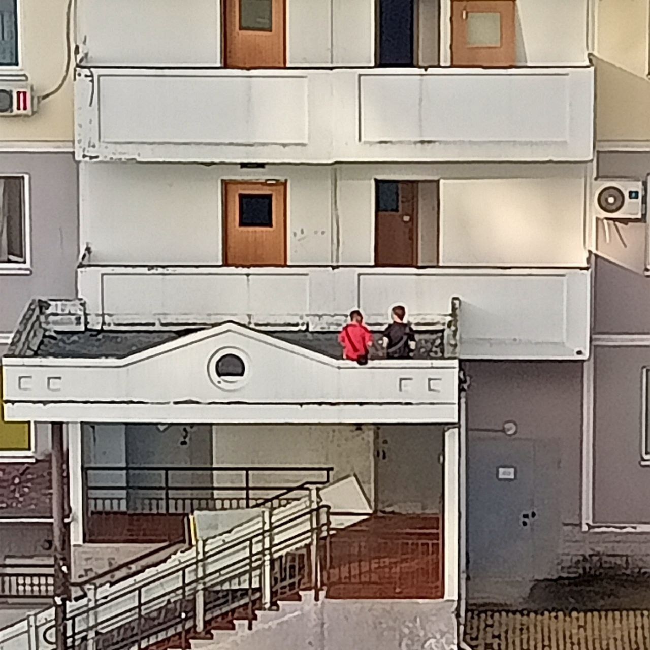 - Дети сидят прямо на козырьке подъезда. Фото сделано на улице Видова в 7 утра 8 августа. Будьте внимательнее к своим детям! - предупреждает горожанин.