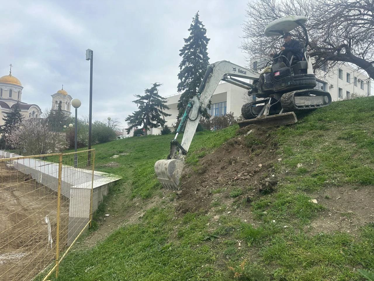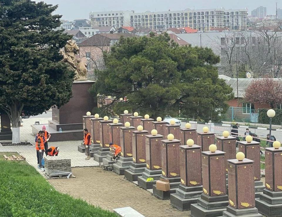 Также ведутся работы по обустройству территории захоронения советских воинов, восстановлению газонов и обновлению освещения.
