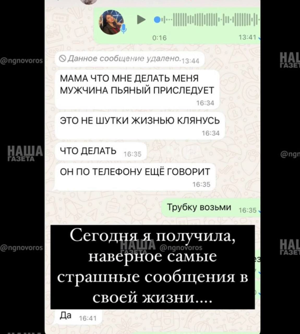 Ребёнок написала матери в мессенджере. Та сразу посоветовала найти взрослых и просить помощи. Девочка обратилась к женщине с ребёнком — та, к счастью, поняла, что происходит, взяла девочку за руку и повела прочь. Мужчина шёл следом, пока не услышал угрозу вызвать полицию.