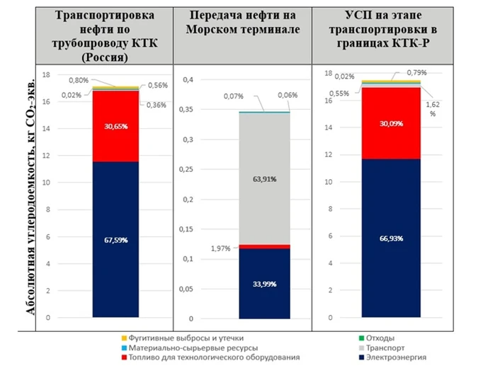 Именно поэтому консорциум инициировал независимую оценку выбросов ПГ и УСП за 2022–2023 годы. Ее результаты позволили не только констатировать текущее состояние, но и оценить потенциальный вклад транспортировки нефти по системе КТК в глобальное потепление.