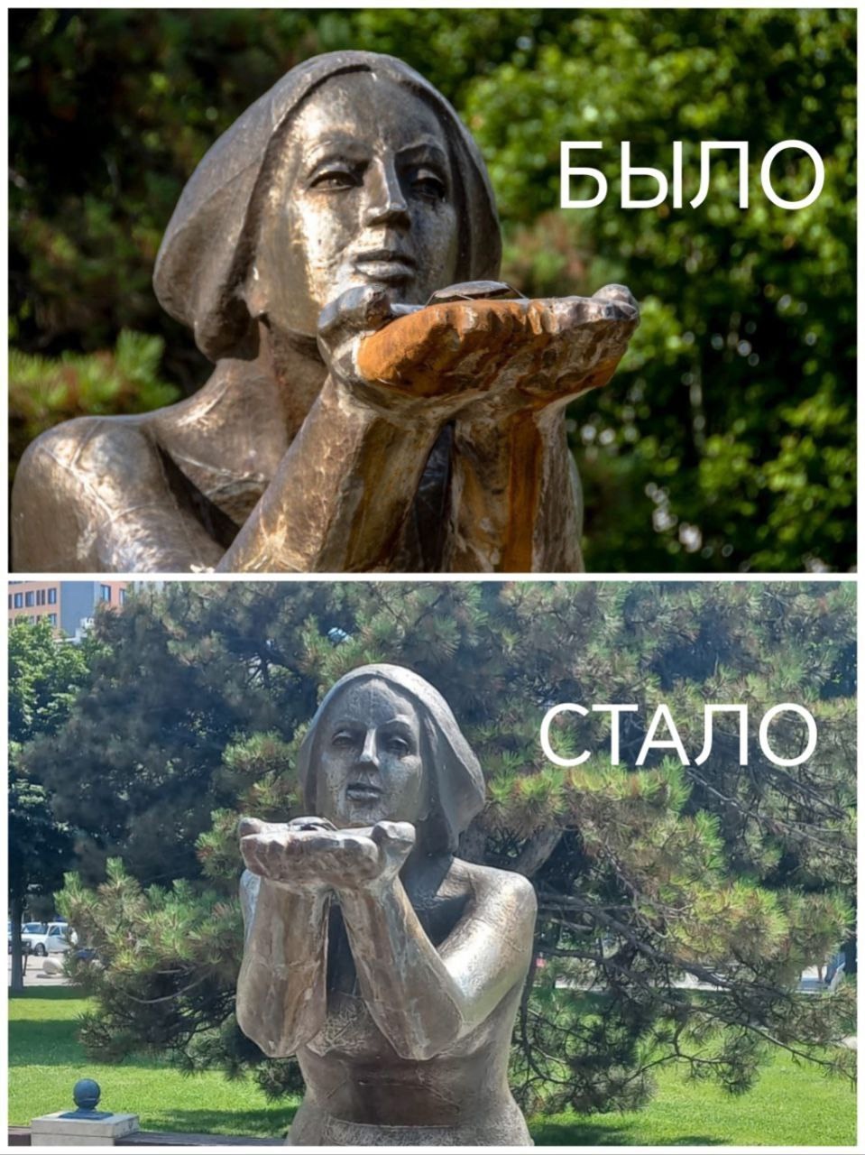 В управлении жилищно-коммунального хозяйства Новороссийска оперативно отреагировали на жалобу. МБУ «Комплексное содержание территория» выполнили работы по устранению ржавого налета со скульптуры, отчитались в администрации.