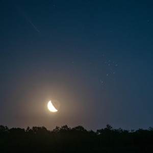 - Этой ночью Звездонавты организовали астровыезд в поля, чтобы понаблюдать Персеиды. В полночь вышла Луна, вернее её маленький огрызочек. Но светила она очень здорово. Неподалёку пели шакалы. В полях под Млечным Путём мы ловили частички из хвоста кометы Свифта-Туттля. Ужалось запечатлеть восход полуночной Луны и Плеяды, почти засвеченные её сиянием. И там ещё сверху вроде как метеор проскользнул. И очень хорошо виден пепельный свет, хотя у Луны фаза 42 процента. Засветка, конечно, лютая. С каждым годом неба видно всё меньше, - поделилась впечатлениями фотограф Tateshi Yokotaishi.