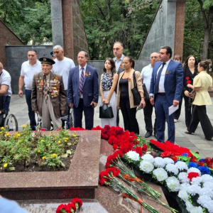 Ветераны возложили цветы на площади Героев и побывали на Шесхарисе у мемориала «Рубеж обороны». Именно в этих местах воевали Розалия Сергеевна и Нерсес Оганесович.