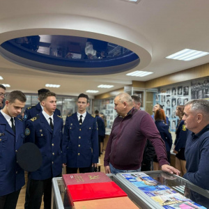 Экскурсия по вузу, Зал истории университета, рассказ о самых значимых патриотических проектах, среди которых, конечно же, «Героический десант» и «Книга Памяти», а еще посещение Технопарка и возможность самим «порулить» танкером, - в Ушаковка ветераны провели более трех часов, встреча получилась насыщенной. Среди гостей Герой России - Евгений Мосейко. Евгений Юрьевич спрашивал о том, есть ли среди выпускников вуза участники СВО, знают ли нынешние курсанты об их боевом пути, как поддерживается связь.