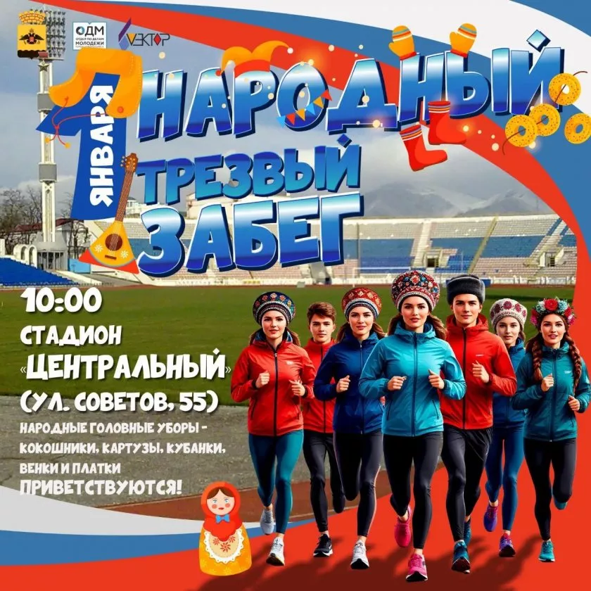 1 января на стадионе «Центральный» в Новороссийске по улице Советов, 55 состоится «Народный трезвый забег». Мероприятие начнется в 10:00. Участников ждут интерактивные точки, где можно будет поучаствовать в различных народных активностях. Также мероприятие посетят Дед Мороз и Снегурочка.