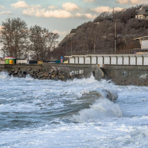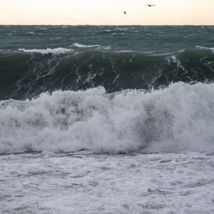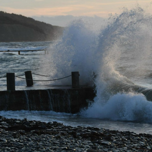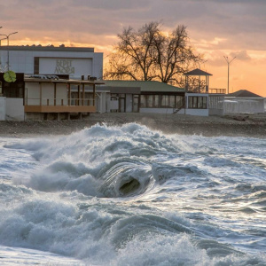 На море начался шторм. Волны поднимаются на высоту нескольких метров и с силой разбиваются о берег, превращаясь в белоснежную пену. Местные фотографы отправились на пляжи, чтобы запечатлеть бурю.