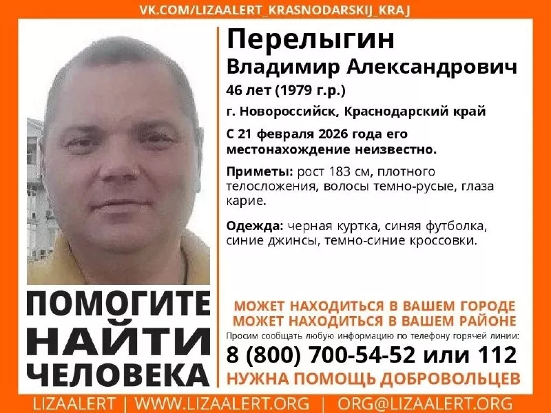Перелыгин Владимир Александрович, 1979 года рождения ушел из дома 21 февраля. С тех пор местонахождение 46-летнего мужчины неизвестно.