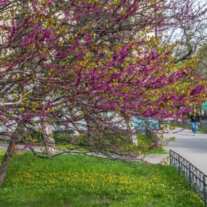 - Сакуры - японской вишни в этом году больше обычного, благодаря осенним посадкам новых деревьев. Церцис - багрянник в этом году буйным цветением не порадует. Старые деревья усыхают, а молодые деревца ещё не развили свои кроны, - поделился наблюдениями фотограф Вячеслав Яровой.