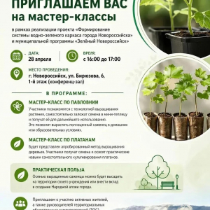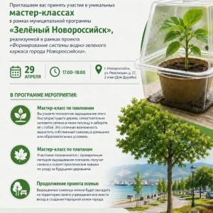 Жителей города приглашают на бесплатные мастер-классы по высадке деревьев из семян в рамках программы «Зеленый Новороссийск». Горожан научат, как сажать павловнию и платаны. Участники познакомятся с технологией выращивания растения, самостоятельно заложат семена в мини-теплицу и получат ее для дальнейшего использования. Это позволит вырастить полноценный саженец в домашних условиях. Осенью выраженные саженцы можно будет высадить в открытый грунт и внести свой вклад в создание Народной аллеи города.