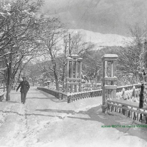 Фото 1: 1930 год. Сад цементного завода «Пролетарий» (бывший турецкий сад). Главная аллея под снегом.