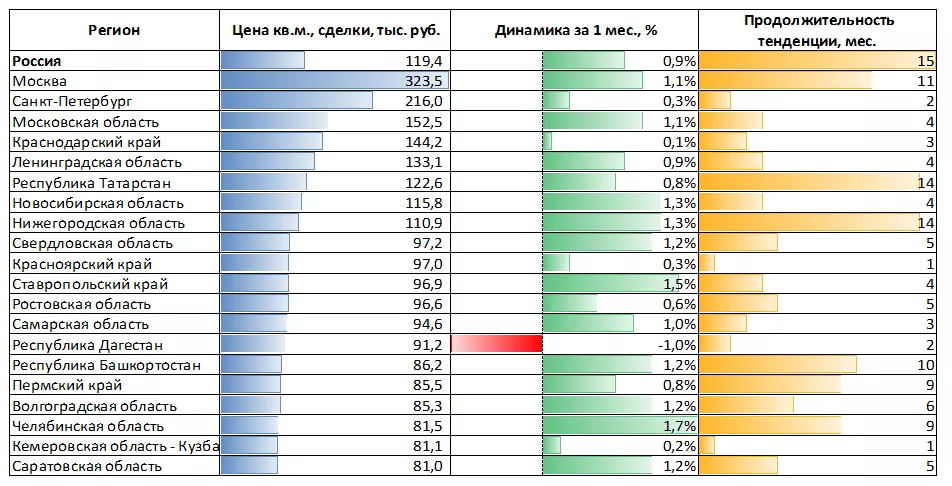По данным Домклик, медианная стоимость квадратного метра в жилье, построенном не более, чем за 10 лет до продажи на вторичном рынке, составила в ноябре 168,0 тыс. руб., причём данный сегмент растёт быстрее новостроек (+9,9% г/г против +6,1% г/г). Разрыв цен между квадратным метром в новостройках и вторичке последних десяти лет постройки составил 7,1%. Стоимость готовой недвижимости советской постройки выросла до 109,2 тыс. руб. за квадратный метр.