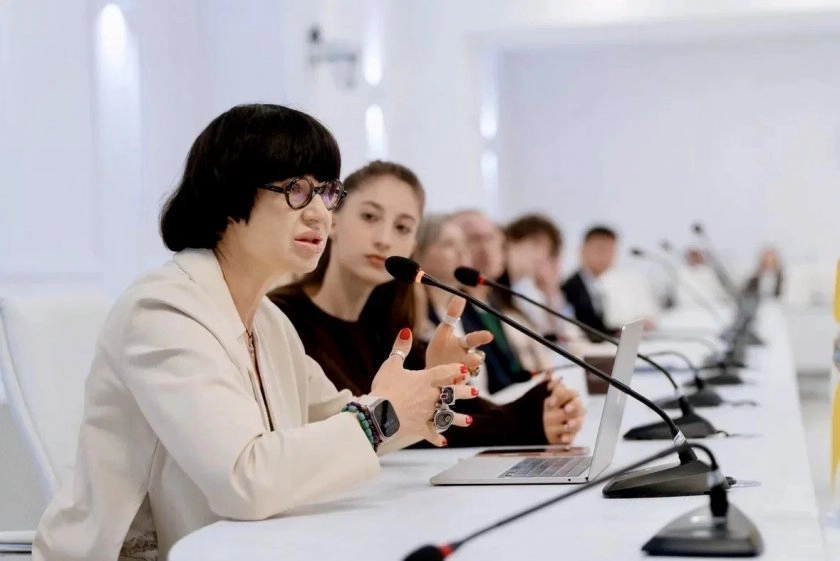 Фото: Генеральный директор и главный редактор "Медиа Групп Бизнес" Людмила Борщова задает вопрос спикерам.