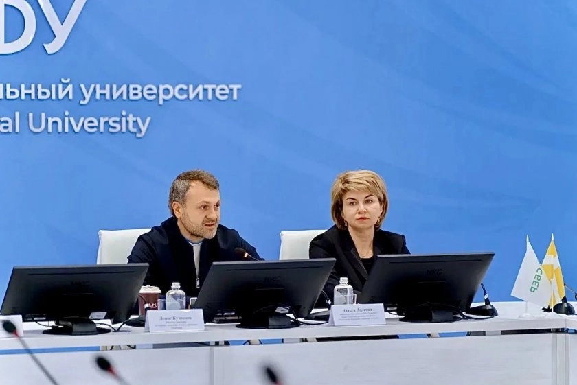 Фото: Спикеры встречи 9 апреля в СКФУ в Пятигорске Денис Кузнецови Ольга Долгова. Автор фото: Константин Бацоев.