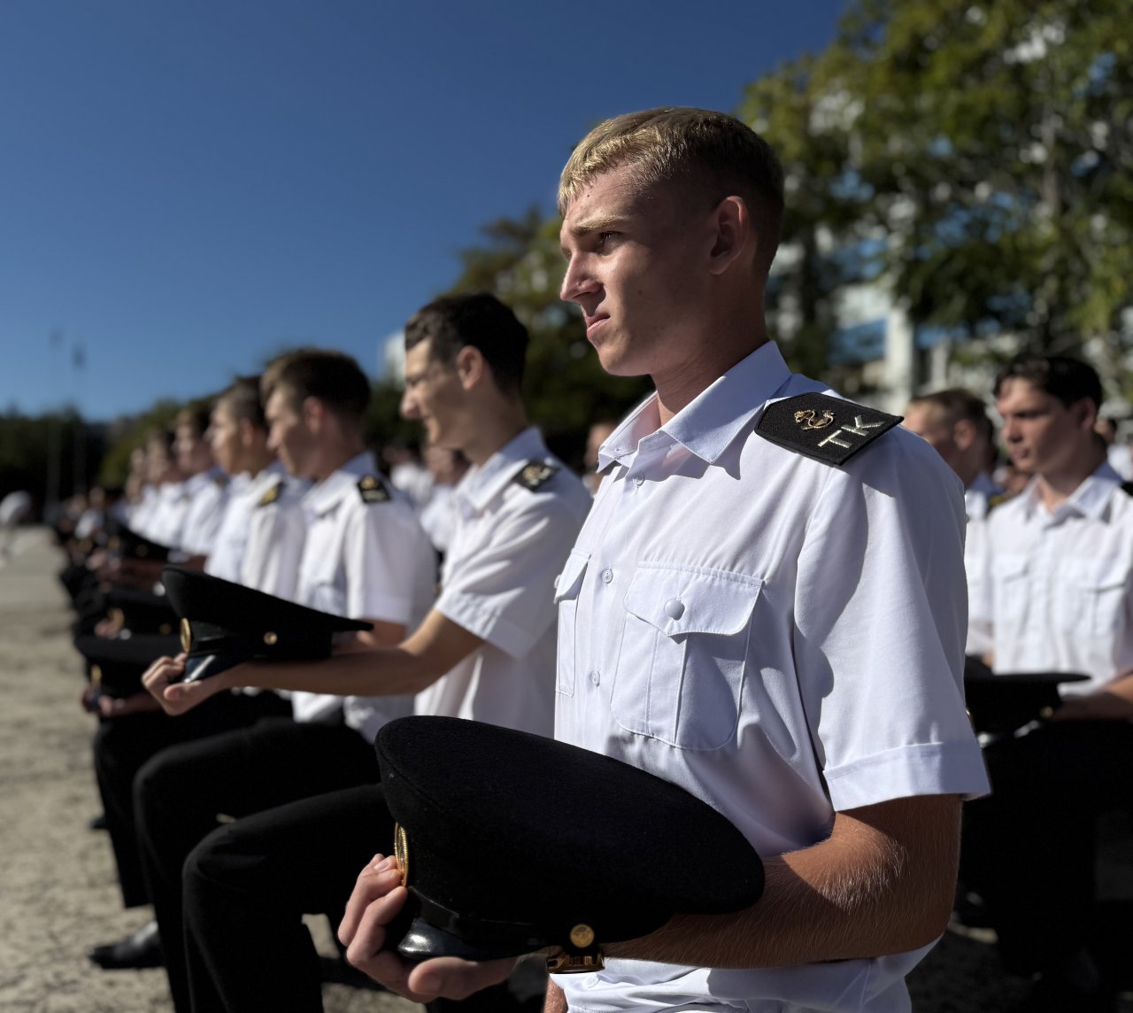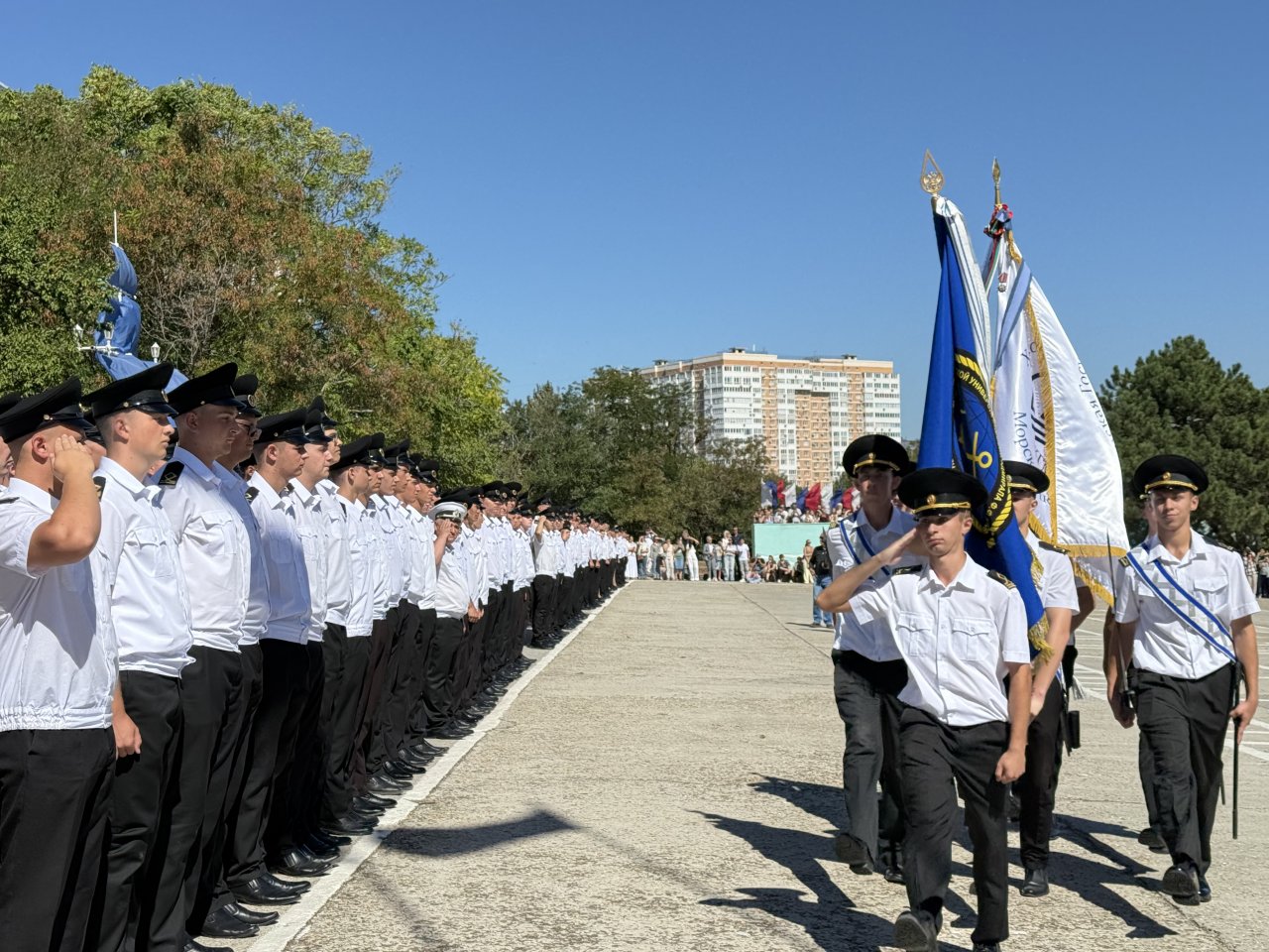 В этот день новобранцам вручают курсантские билеты те, кто 50 лет назад был первым набором и стоял в первом строю Новороссийского высшего инженерного морского училища, ныне ГМУ им. адм. Ф. Ф. Ушакова. Именно они учились, строили, закладывали традиции, создавали репутацию вуза.