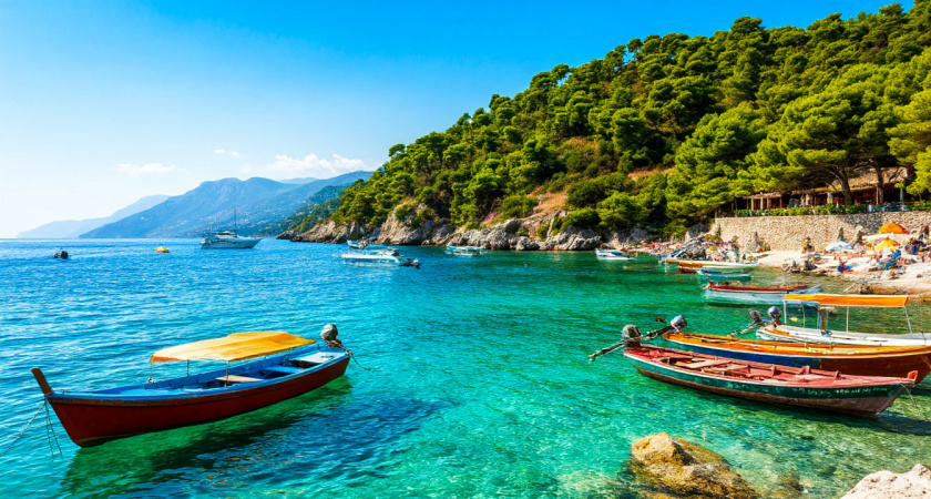 Чистое море и красивые горные виды
