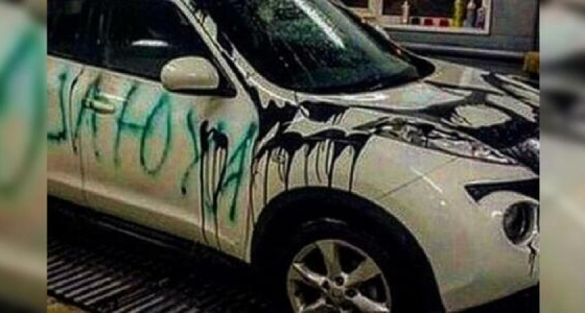 Белую иномарку злоумышленники облили черной краской и написали на ней ругательство. Как предполагают журналисты, такой поступок совершили из-за резкой критики автоледи в адрес персонала местного кафе. Имена хулиганов не известны.