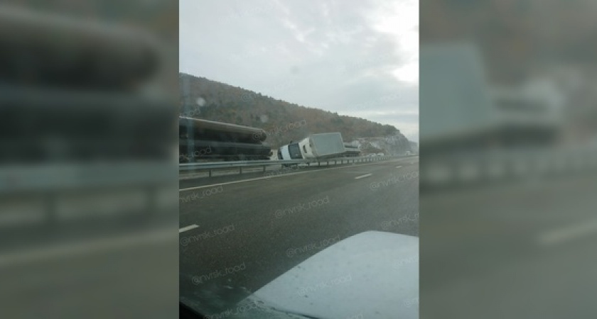 На трассе под Новороссийском сильным ветром перевернуло «Газель»