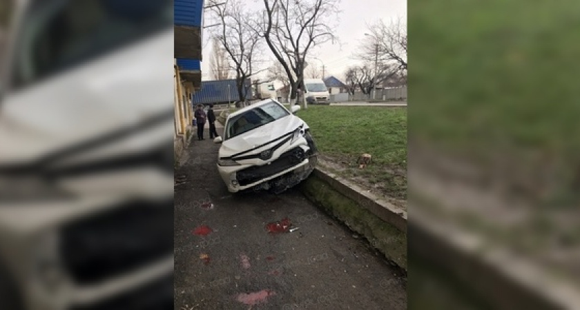 В Новороссийске новенькая иномарка перелетела через палисадник и приземлилась на тротуар возле жилого дома