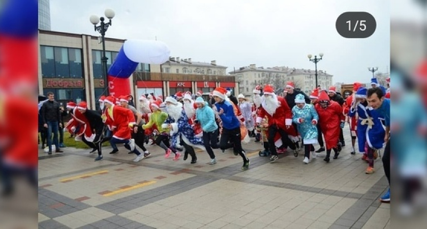Несмотря на непогоду, в Новороссийске состоялся забег Дедов Морозов