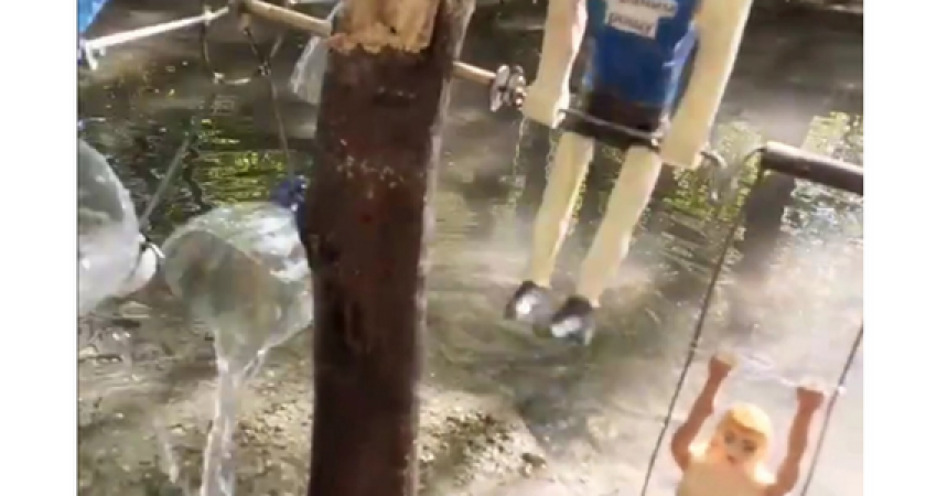 Но фигурки не долго радовали глаз горожан. Как сообщает мастер, их утащили. На их месте Валерий Андреев установил гимнаста, который выполняет акробатические элементы на брусьях. Чуть позже у спортсмена появилась подружка, качающаяся на качелях.