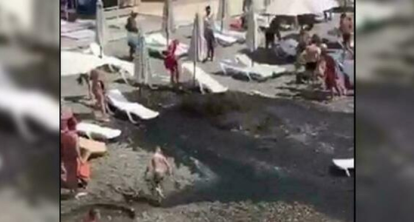 Все случилось на пляже Чкаловский в Адлерском районе Сочи. Среди загорающих внезапно забил фонтан грязи темного цвета. Тонны нечистот затем стекали в море, окрашивая воду в черный цвет.