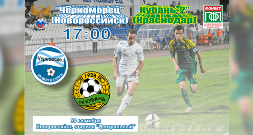 Владельцы абонементов на стадион «Центральный» смогут посетить матч 30-го сентября, предъявив свои абонементы с корешками матча от 14-го апреля. Матч 11-го тура между «Черноморцем» и «Кубанью-2» в Новороссийске начнется в 17:00.