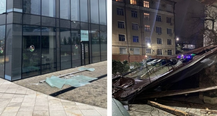 Не выдержала обшивка ЖК «Облака» на Куникова, 55 и ЖК «Аврора 2» на Мысхакском шоссе. Оторванная облицовка разлетелась по окрестностям.