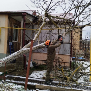 Специалисты коммунальных и дорожных служб совместно со спасателями проводят работы по ликвидации последствий урагана.